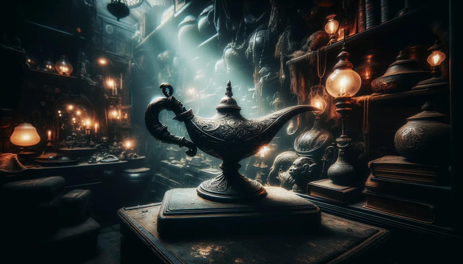 The shop was a labyrinth of relics, each with its own untold story. But amidst the clutter, a peculiar object caught Ethan's eye: an ancient-looking genie lamp, its metal tarnished by time, yet with intricate engravings that spoke of a faraway land and a forgotten era.